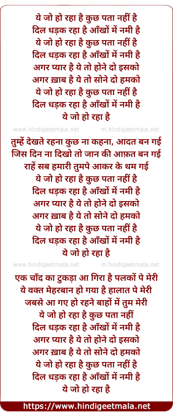 Lyrics of Ye Jo Ho Rahaa Hai - ये जो हो रहा है