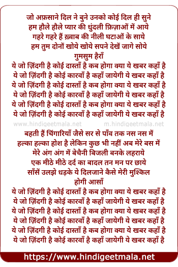 ye jo jindagi hai koi dasta hai kab hoga kya ye khabar kaha hai