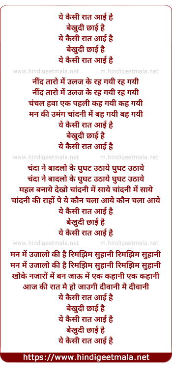 Lyrics of Ye Kaisi Raat Aayi Hai