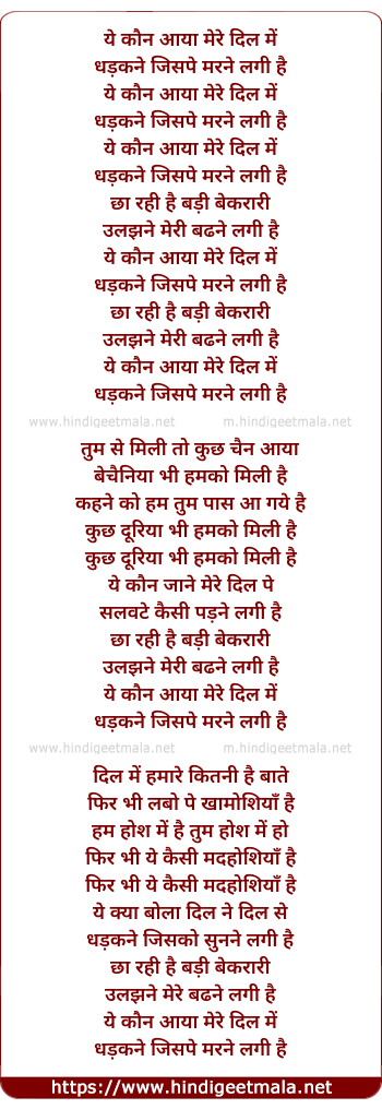 Lyrics of Ye Kaun Aaya Mere Dil Me - ये कौन आया मेरे दिल में