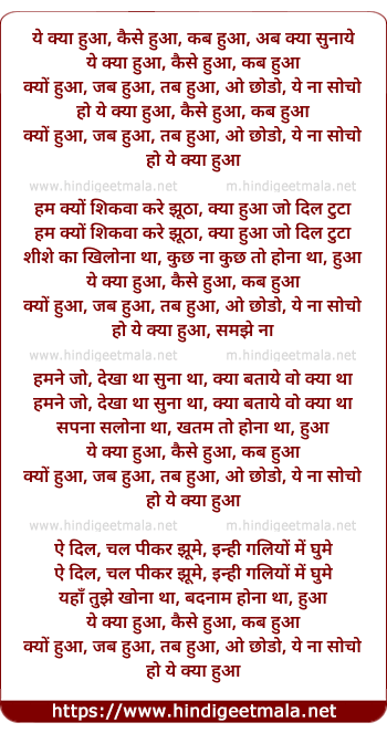 Lyrics of Ye Kya Hua, Kaise Hua, Kab Hua, Kyu Hua, Jab Hua, Tab Hua - ये क्या हुआ, कैसे हुआ, कब हुआ, क्यों हुआ, जब हुआ, तब हुआ