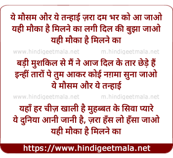 Lyrics of Ye Mausam Aur Ye Tanhai - ये मौसम और ये तन्हाई