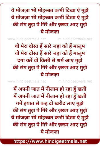 Lyrics of Ye Mojeza - ये मोजज़ा भी मोहब्बत कभी दिखा ऐ मुझे