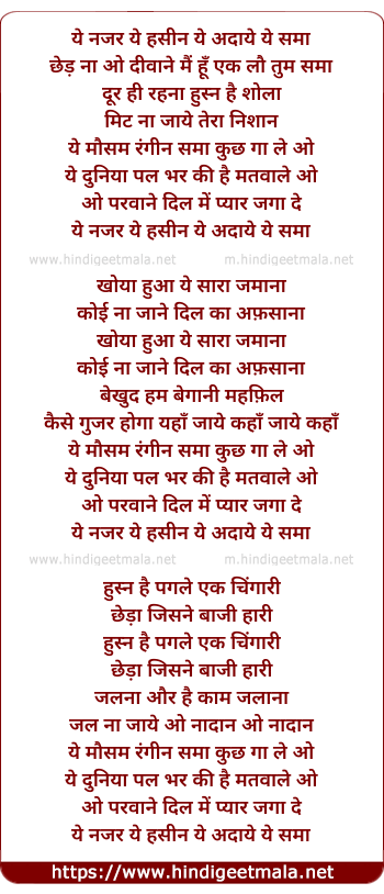 Lyrics of Ye Nazar Ye Haseen - ये नजर ये हसीन