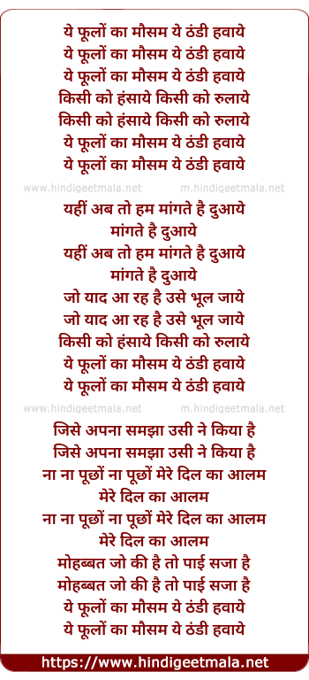 Lyrics of Ye Phulo Ka Mausam - ये फूलों का मौसम ये ठंडी हवाये
