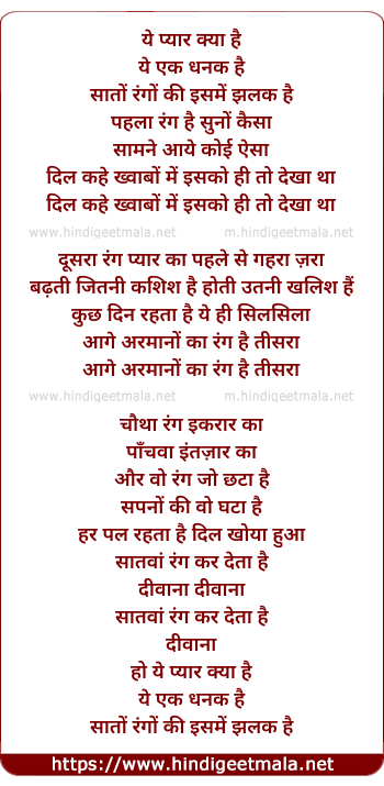 Lyrics of Ye Pyaar Kya Hai (Thats Love) - ये प्यार क्या है