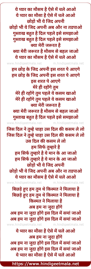 Lyrics of Ye Pyar Ka Mausam Hai - ये प्यार का मौसम है