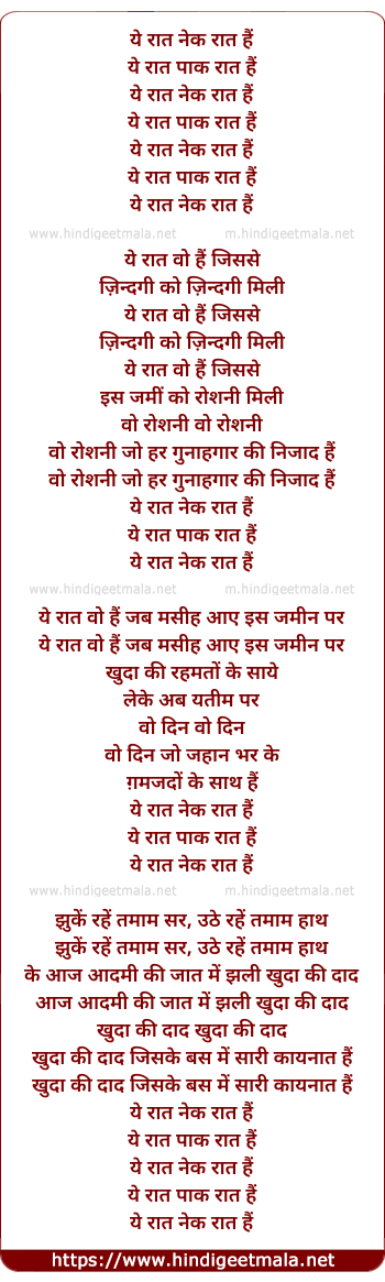 Ye Raat Nek Raat Hai - ये रात नेक रात हैं