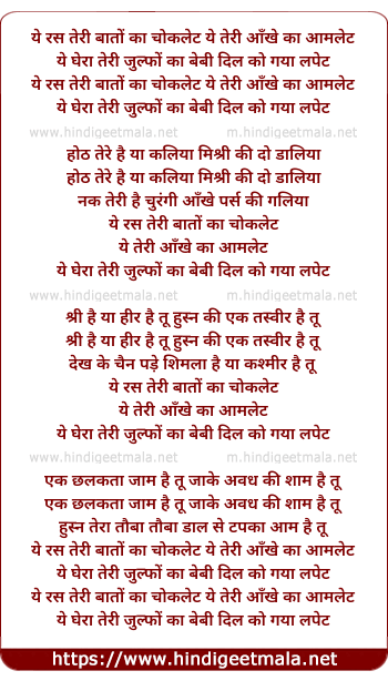 ye ras teri bato ka chochlate ye jadu teri aankho ka aamlate