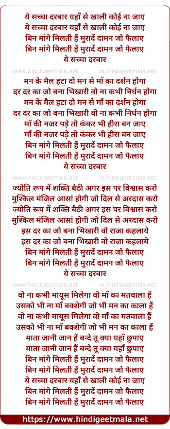 Lyrics of Ye Sachcha Darbar - ये सच्चा दरबार