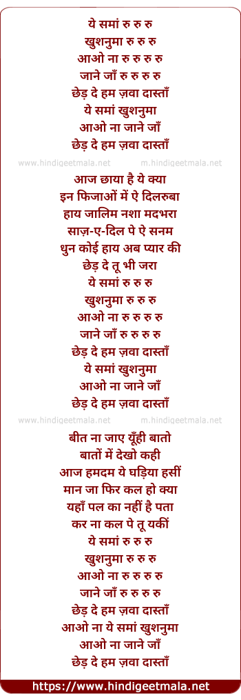 Lyrics of Ye Sama Khushnuma - ये समां खुशनुमा