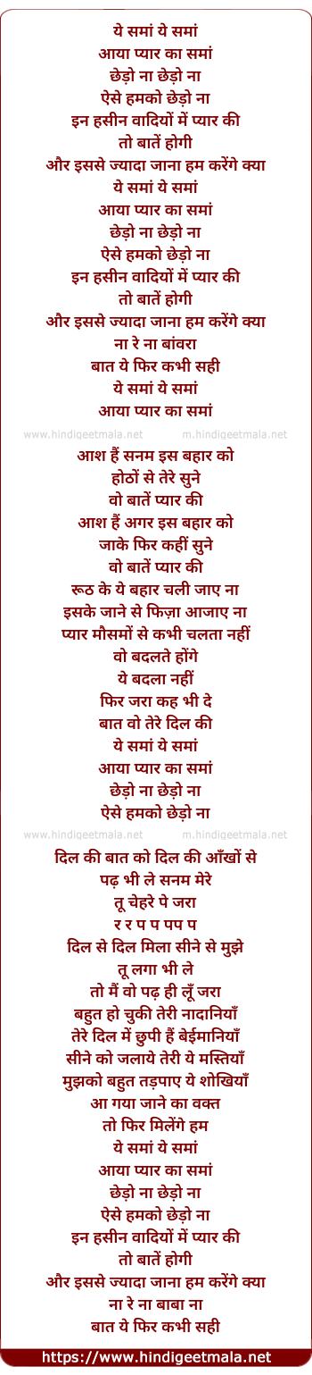 Lyrics of Ye Sama Ye Sama Aaya Pyar Ka Sama - ये समां ये समां आया प्यार का समां