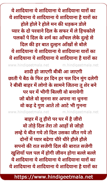 Lyrics of Ye Shadiyana Hai Yaro Ka - ये शादियाना है यारों का