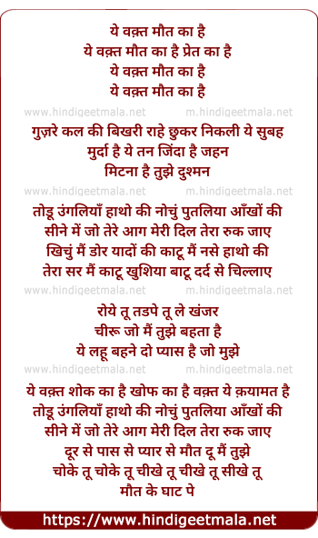 Lyrics of Ye Waqt Maut Ka Hai - ये वक़्त मौत का है