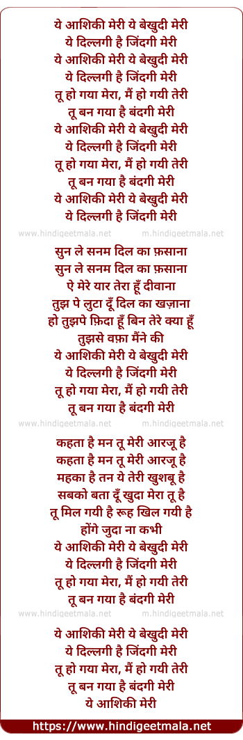 Lyrics of Ye Aashiqui Meri - ये आशिकी मेरी