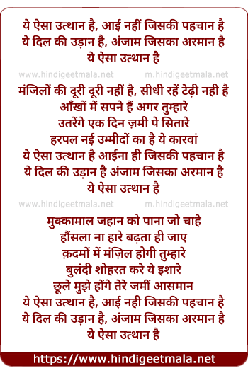 Lyrics of Yeh Aisa Utthaan Hai - ये ऐसा उत्थान है
