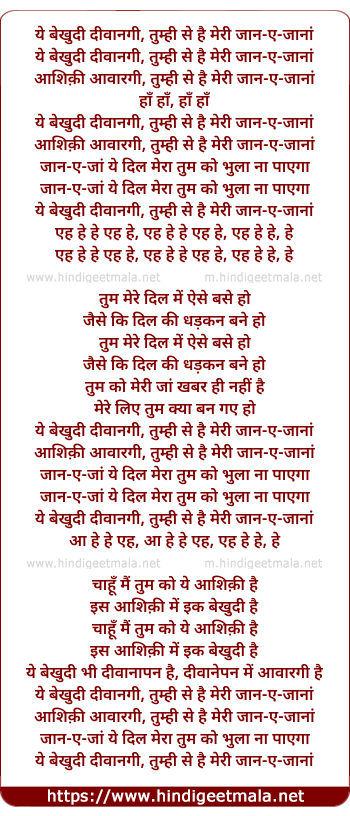 Lyrics of Yeh Bekhudi Deewaangi - ये बेखुदी दीवानगी