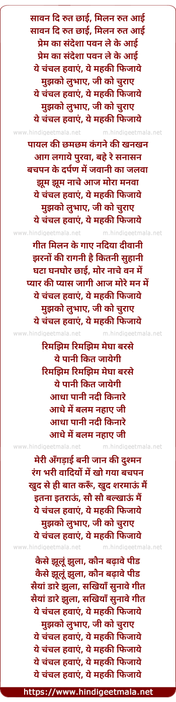 Lyrics of Ye Chanchal Hawaye - ये चंचल हवाये