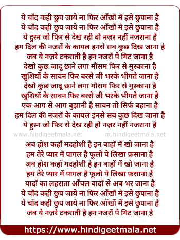 ye chand kahi chup jaye na fir ankho me ise chhupana hai