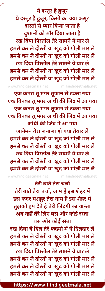 Lyrics of Yeh Dastur Hai Hujur - ये दस्तूर है हुजूर
