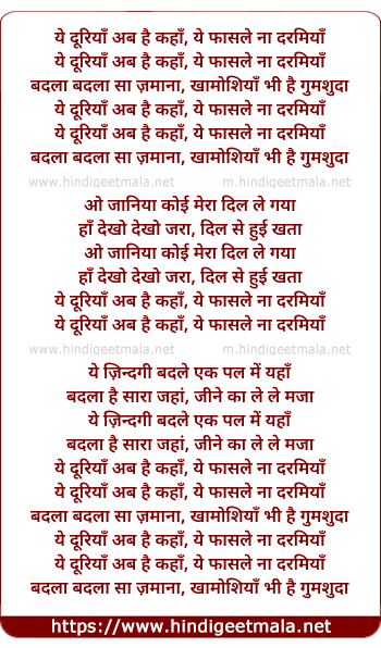 Lyrics of Ye Dooriyaan Ab Hai Kahaan - ये दूरियाँ अब है कहाँ