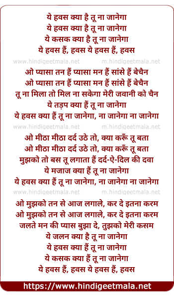 Poetic Translation - Lyrics of Ye Hawas Hai - ये हवस है