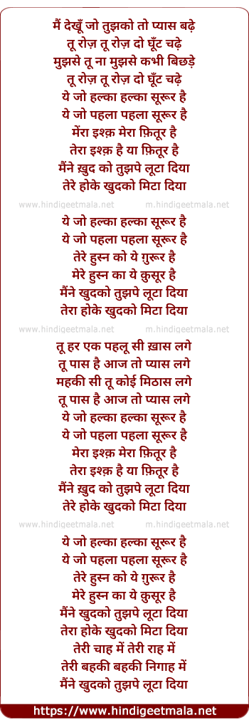 Lyrics of Yeh Jo Halka Halka Suroor Hai - ये जो हल्का हल्का सूरूर है