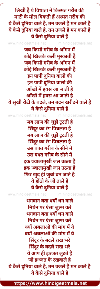 Lyrics of Yeh Kaise Duneeya Waale Hain - ये कैसे दुनिया वाले है