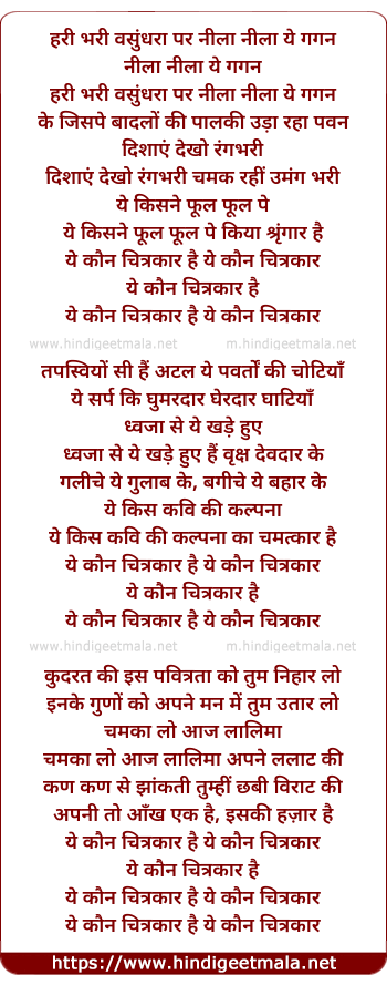 Lyrics of Ye Kaun Chitrakar Hai - ये कौन चित्रकार है