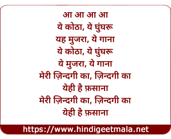 Lyrics of Yeh Kotha Yeh Ghungroo - आ आ आ आ