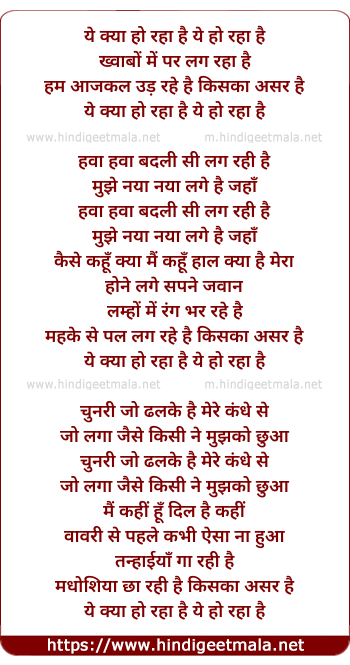 Lyrics of Yeh Kya Ho Raha Hain, Yeh Kyon Ho Raha Hain - ये क्या हो रहा है, ये क्यों हो रहा है