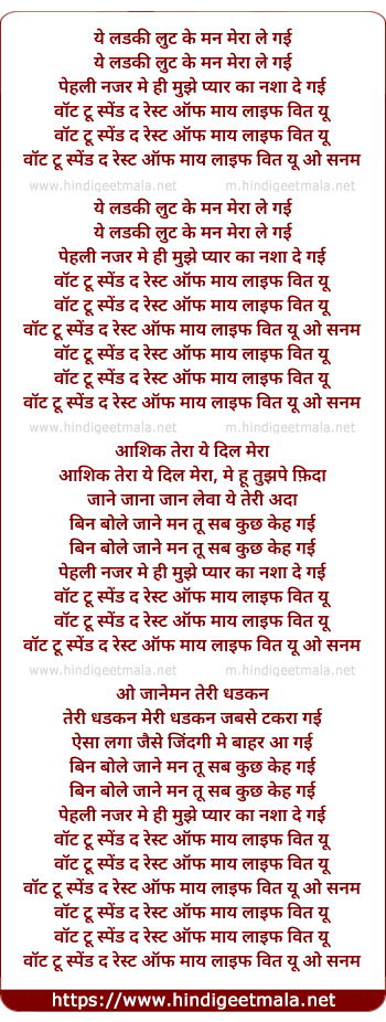 Yeh Ladki Lut Ke Mann Meraa Le Gai - ये लडकी लुट के मन मेरा ले गई