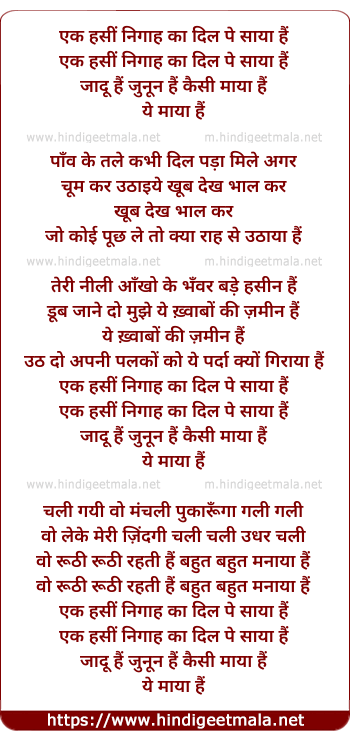 Lyrics of Yeh Maya Hai (Ek Haseen Nigah Ka Dil Pe Saya Hai) - एक हसीं निगाह का दिल पे साया हैं