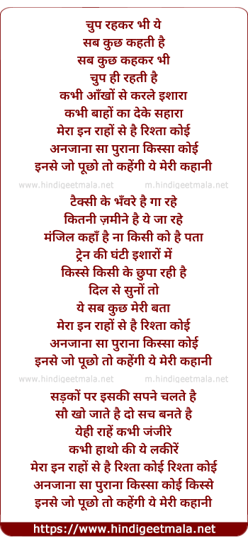 Lyrics of Yeh Meri Kahaani - चुप रहकर भी ये