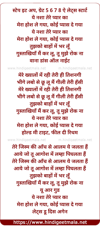 Poetic Translation - Lyrics of Yeh Nasha - स्टेप इट अप, ग्रेट 5 6 7 8 ऐ लेट्स स्टार्ट