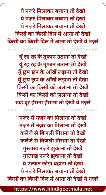 Lyrics of Yeh Nazar Milakar Bachna To Dekho - ये नज़रे मिलाकर बचाना तो देखो