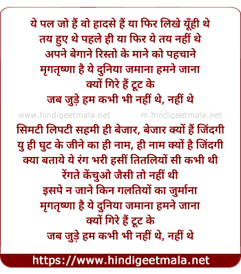 Poetic Translation - Lyrics of Ye Pall - ये पल
