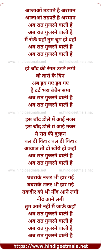 Lyrics of Yeh Raat Guzarne Wali Hai - ये रात गुजरने वाली है