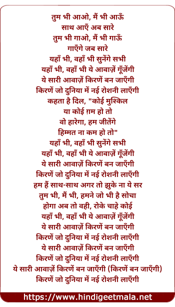 Lyrics of Yeh Saari Aawazein Kiranen Ban Jayengi - यह सारी आवाजें किरणें बन जाएँगी