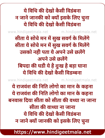Lyrics of Yeh Vidhi Ki Dekho Kaisi Vidambana - ये विधि की देखो कैसी विडम्बना