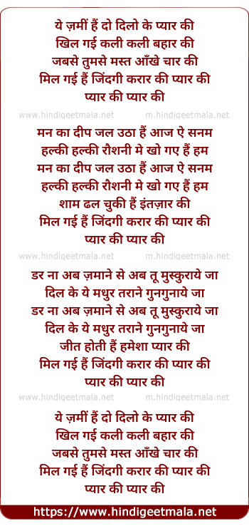 Lyrics of Ye Zamin Hai Do Dilo Ke Pyar Ki - ये ज़मीं हैं दो दिलो के प्यार की