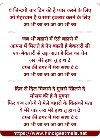 Lyrics of Ye Zindagi Char Din Kii - ये ज़िन्दगी चार दिन की