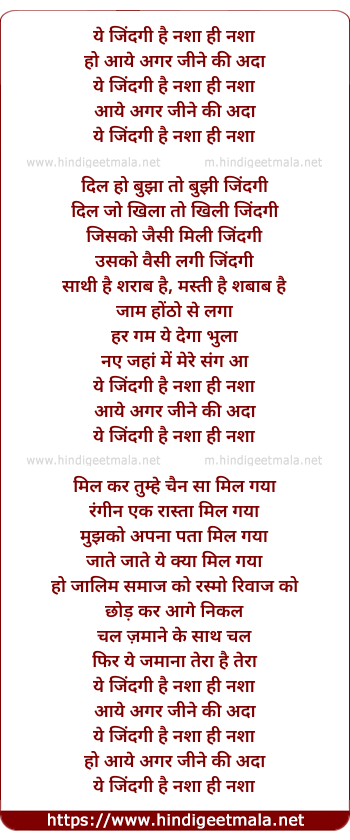 Lyrics of Yeh Zindagi Hai Nasha - ये जिंदगी है नशा ही नशा