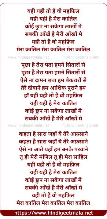 Lyrics of Yehi To Hai Wo Mehfil - यही तो है वो महफ़िल