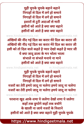 Lyrics of Yu Hi Chupake Chupake Bahane Bahane - यूँ ही चुपके चुपके बहाने बहाने