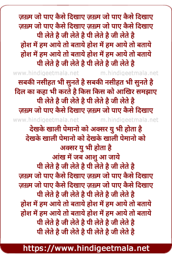 Lyrics of Zakhm Jo Paye - ज़ख़्म जो पाए