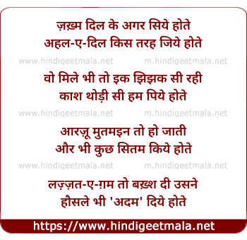 Lyrics of Zakm Dil Ke Agar Siye Hote - ज़ख़्म दिल के अगर सिये होते