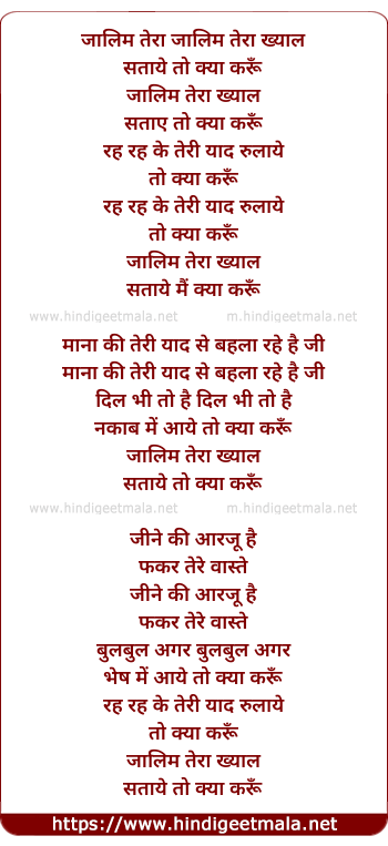 Lyrics of Zalim Tera Khayal Sataye To Kya Karu - जालिम तेरा जालिम तेरा ख्याल
