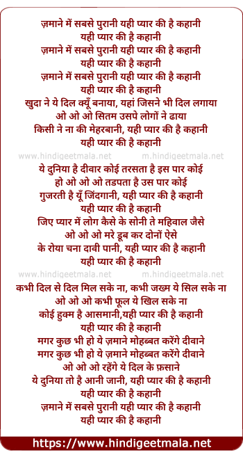 Lyrics of Zamane Mein Sabse Purani - ज़माने में सबसे पुरानी