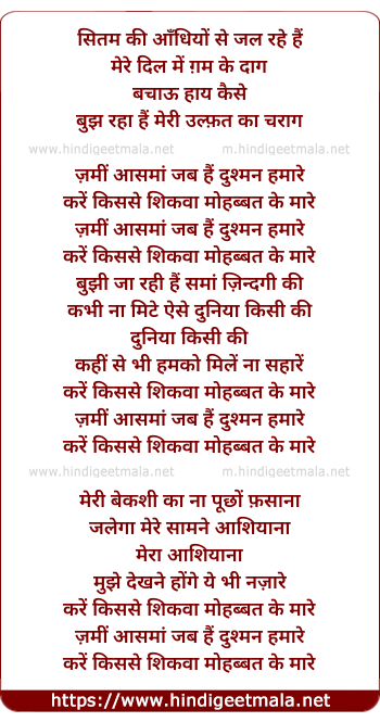 Lyrics of Zami Aasma Jab Hai Dushman Hamare - ज़मीं आसमां जब हैं दुश्मन हमारे